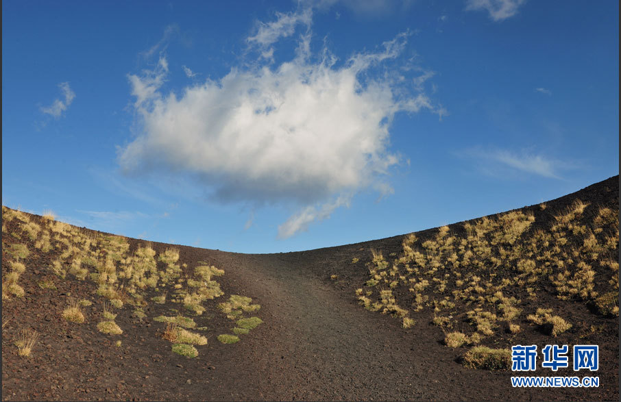埃特纳火山坐落于意大利西西里岛东岸,据传其名来自腓尼基语“attuna”(熔炉)。埃特纳是欧洲最高的活火山,目前海拔约3329米,其下部为一个巨大的盾形火山,上部为高约300米的火山渣锥。图为在埃特纳火山海拔约2900米处看到的火山渣锥。