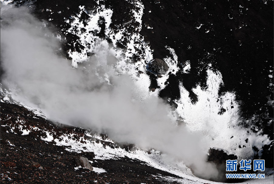 图为埃特纳火山海拔约2900米处一个喷着烟雾的小喷发口。