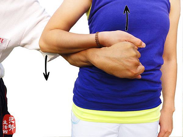 使用時機:情人約會遲到,笑裡藏刀的牽住他的手,以小吃大的牽手擒拿。(看你下次約會還敢不敢遲到!)