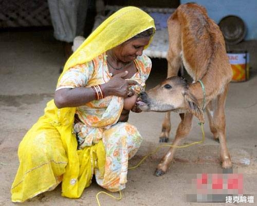 印度一名47歲的婦女每天給自家的牛犢哺乳數次,在她看來,自母牛不幸喪命之後,她自然而然的擔負起照顧小牛的職責。