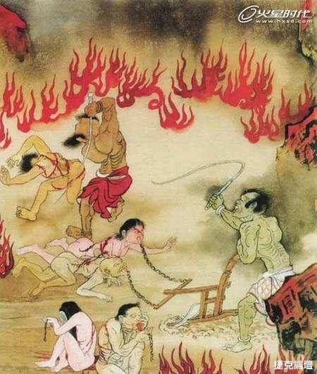 賣淫嫖娼,盜賊搶劫,欺善淩弱,拐騙婦女兒童,誣告誹謗他人,謀占他人,妻室之人,死後打入油鍋地獄,剝光衣服投入熱油鍋內翻炸,啪,啪直響!依據情節輕重,判炸 N遍......有時罪孽深重之人,剛從冰山地獄�出來,又被小鬼押送到油鍋地獄�暖和暖和...... 此上九層,即東地獄,雖叫法與酆都略有不同,可見地獄何其多也,並非董某手誤。而《水陸全圖》中的下九層的西地獄,則更殘酷......預知下九層如何,且聽下回分解。平常人們所說的十八層地獄,數目是對了,但從意義上卻不見得理解。《十八泥犁經》中講到這十八層的差別,最主要不在於空間的上下,而在於時間和刑法上的不同,尤其時間上。若與陽世的時間比較,第一層地獄是以人間的三千七百五十年?一年,在這�的?生必須在此生活一萬年,想要早死一天都不行,而這一萬歲就相當於陽間的一百三十五億年。而由於地獄的時間和壽命都是依次倍增的,所以,到了第十八層地獄,便以億億億年單位,如此長期的受刑時間,可說是名符其實的萬劫不復,痛苦和殘酷的景象,是世人所難以想像和理解的。