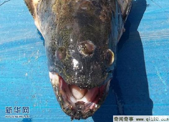 新華網引述阿根廷媒體報導,在阿根廷中部科爾多瓦省一座核電站附近的水庫中,一群釣魚愛好者日前釣起了一條有三隻眼睛的南美牙魚。圖為釣魚愛好者用手機拍攝的“三眼魚”的照片。