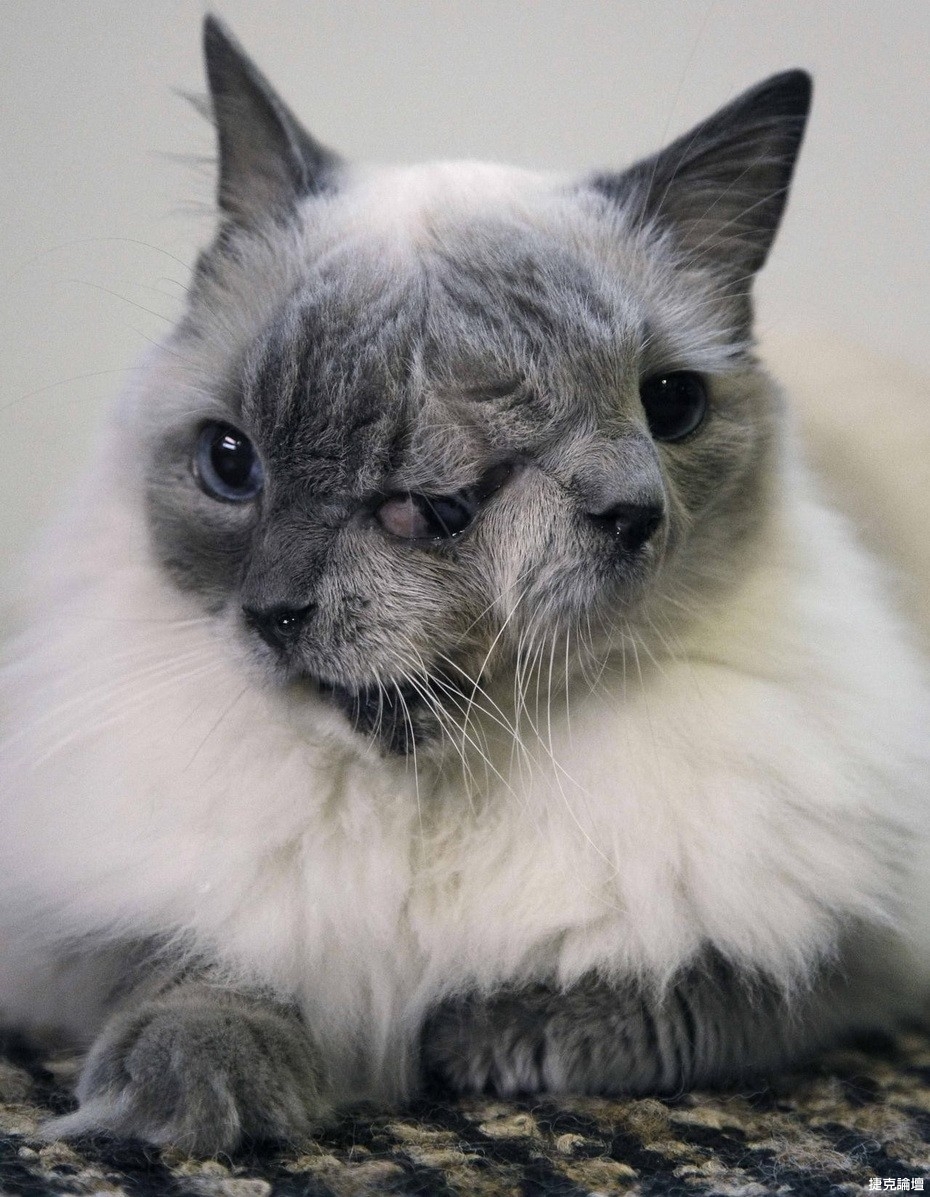 美國伍斯特,美國馬薩諸塞州的雙面貓“弗蘭肯路易”。