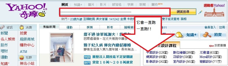 就是一開網頁它的有搜尋的框框裡就會有------------------------------一直在跑