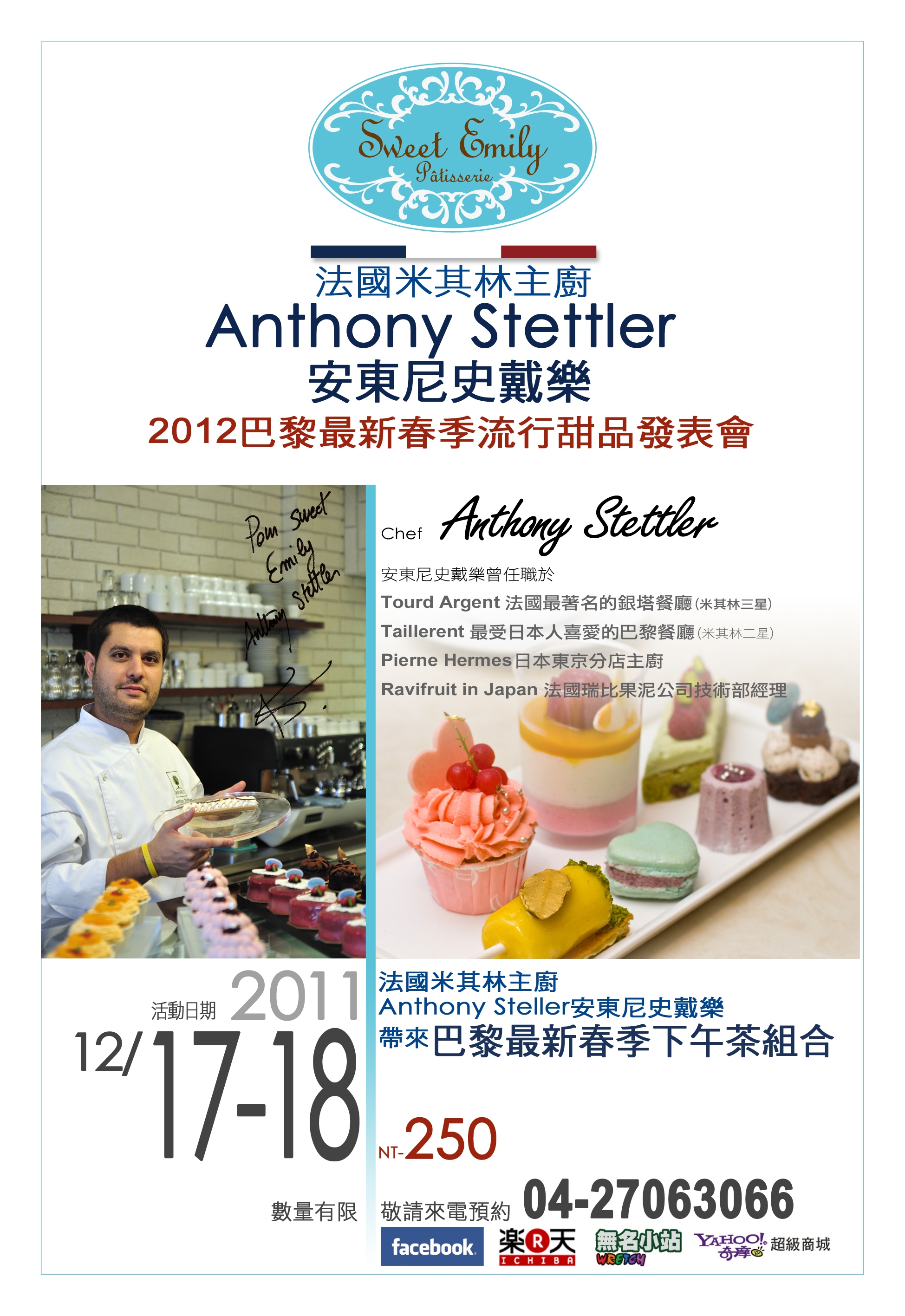 Sweet Emily這次特別邀請法國米其林廚 Anthony Steller安東尼史戴樂 為大家帶來巴黎最新春季下午茶組合