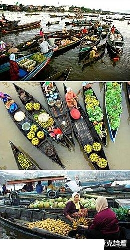 在印度尼西亞南加里曼丹省有一座被稱為是“千河之城”的城市——班格爾馬辛。在這座與眾不同的城市有一個與眾不同的集市——穆阿拉槿水上市場(因其位於穆阿拉槿河的入海口而得名)。在這個集市,人們每天都是通過乘做船將貨物運來,並在船上進行交買賣。每年,這兒都吸引著好多遊人來此觀光。