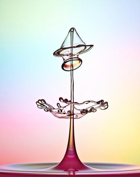飞溅的水花形成一个装饰华丽的帽子,又好似彩色的棉花糖