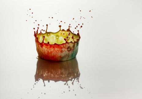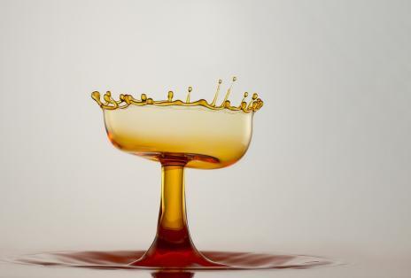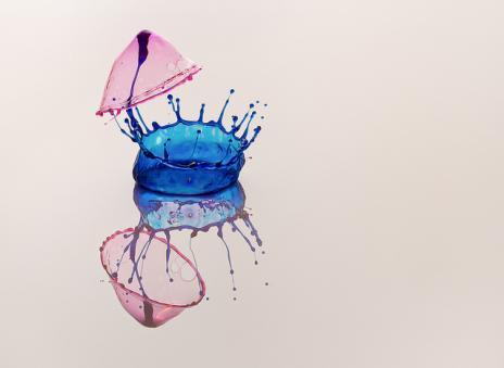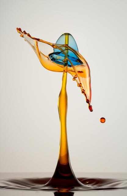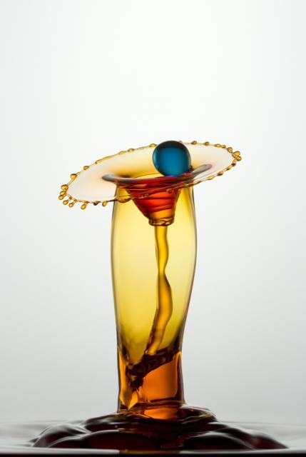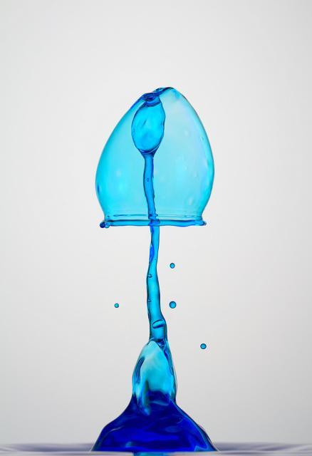 高速摄影需要设置极快的快门速度,进而捕捉下肉眼几乎无法看到的景象。随着水花在镜头中定格,一幅精彩的作品呈现在我们面前。这幅作品中的水花好似一个高脚杯,又好似一顶造型奇特的帽子