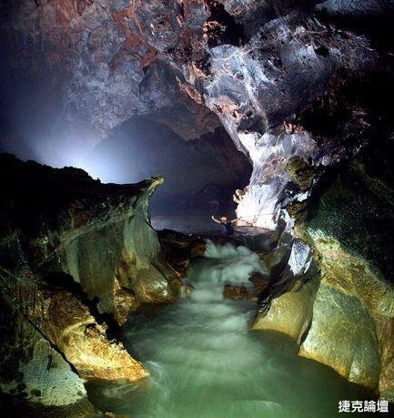 來自英國探險隊和NHK記者,在越南的山區找了6個小時,終於看到全世界最大洞穴-韓松洞,瀰漫煙霧的洞口,像極了武俠小說裡大俠閉關練功的地方,一踏入最大洞穴-韓松洞,立刻進入深不見底的隧道,順著隧道往下走,馬上看到第一個驚喜-地底河流。