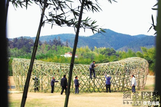 1,為了慶祝奧運會召開,雙溪漂流山溝溝景區特地請來當地的能工巧匠,用了800根竹子自編的「鳥巢」。經過10多人半個多月的手工編制,一個仿照「鳥巢」造型的竹製鳥巢,今年3月在雙溪漂流風景區展露靚姿。這個「竹鳥巢」按照20比1的比例製作。作為今後當地鄉村運動會的會場,這兒將開展沙灘排球、弓箭狩獵、滾鐵圈、玩陀螺等10多個項目。