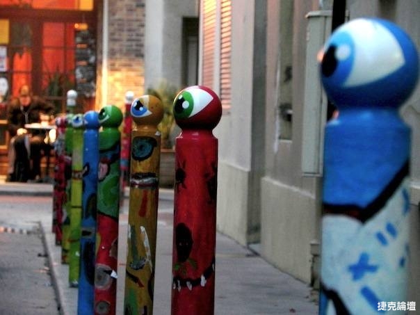 這是一位叫CyKlop的藝術家,在巴黎街道上的柱狀路欄上的創作,不過據說他創作沒多久,巴黎市政府的清潔人員就會效率很好的清乾淨這些柱子,真是有些可惜說!因為這些長眼睛的柱子,給了小朋友更多的想像空間呢!