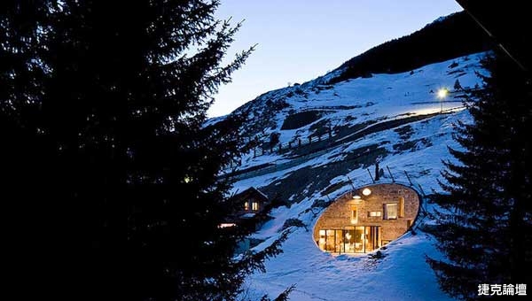 這間現代化的洞穴villa是建築師Bjarne Mastenbroek和Christian Müller在2009年的作品,為了不破壞當地地貌,設計師特別設計一條地下隧道,連接著舊穀倉作為出入口,villa本身沿著阿爾卑斯山脈建造,只露出圓形的洞口向外,搭配巨大的透明落地窗,為室外提供充足自然採光的同時,又不至於毫無隱私可言,此外,建築體自然向上的角度也成了最佳遠眺視角,可說是用現代建築重新詮釋著「別有洞天」這四個字的意義。