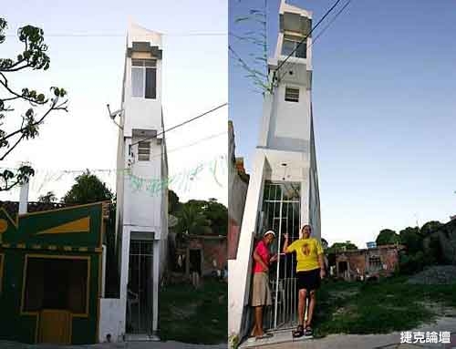 這是世界上最窄的樓,高10米,2個客廳,3個帶衛生間的臥室,有廚房,還有1個陽台,整個樓最窄的地方只有1米。