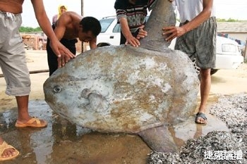 旅順口區開發區楊家村附近海灘上,有漁民拉上來一條1米多長、130多公斤的“大頭怪魚”,就連在海邊生活了60多年的老漁民也未見過此魚。專家稱此“怪魚”其實是一條翻車魚,是一種罕見的河豚科多骨魚。