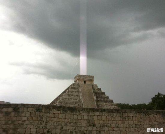 不過最近赫克托做出了解釋,我當時拍攝它只是因爲天氣的原因,那時候正有雷雨,閃電造成了這樣的景觀,我拍了許多照片才捕捉到了這張完美的鏡頭,閃電與金字塔交相輝映。它猶如一道光束傳入金字塔。