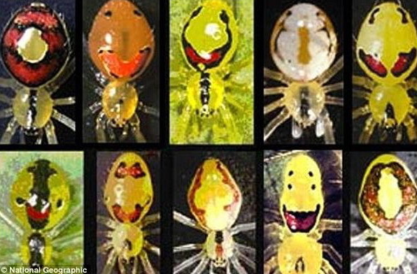 美國夏威夷的叢林中生活著一種奇特的「笑臉蜘蛛」,這種蜘蛛的腹部長有形如人類笑臉的圖案。科學家們解釋認為,這種笑臉圖案是由於基因的自然變異形成的,主要是用來阻嚇其它的獵食類動物。