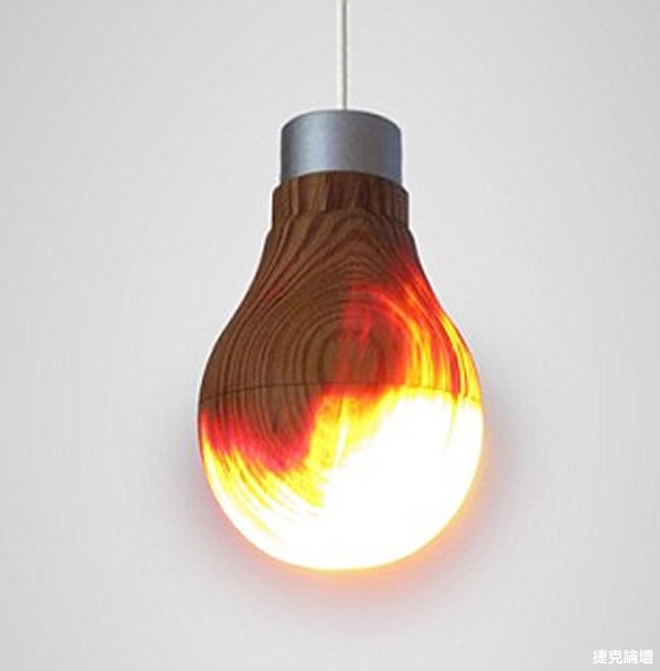 猛地一看它好像是一個被雕刻得像一個燈泡的木塊,但通過打開電源開關,這個木頭燈泡賦予了新的生 命,能夠釋放出熾熱的火焰光線。