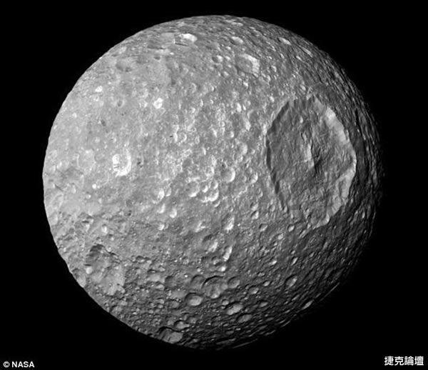 這是星球大戰中的死星嗎?慶幸的是,這僅是土星的衛星——土衛一,它位于土星環狀結構區域