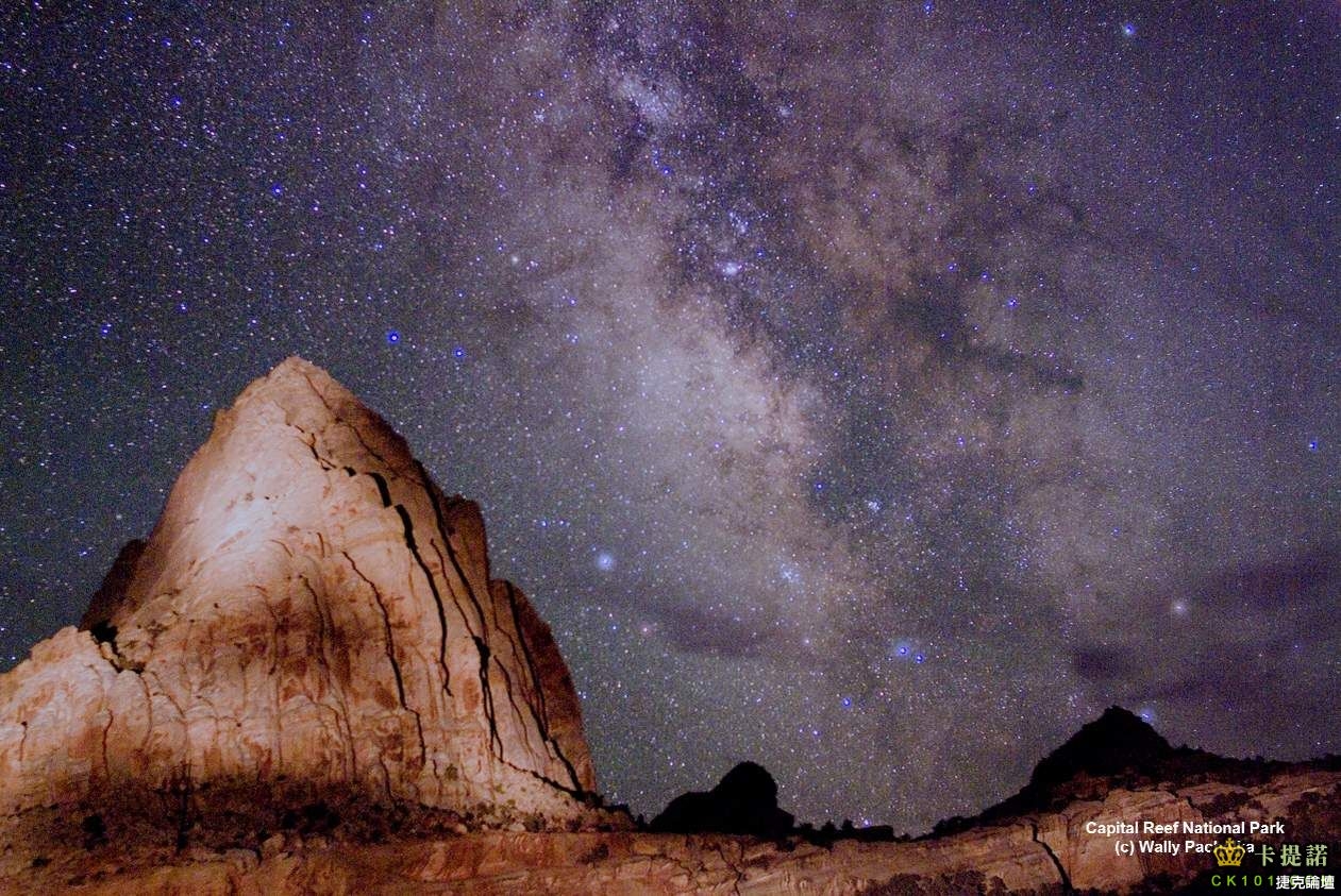 下面這幅天與地爭輝的影像,是2003年在美國.猶他州的圓礁國家公園 (Capitol Reef National Park)拍攝的。