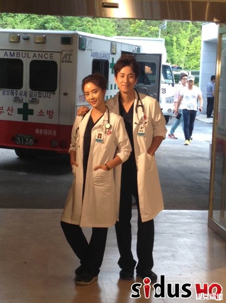公開的照片中,?靜茵身穿白大褂,甜蜜微笑著凝視著鏡頭,毫無倦意。並且?靜茵和李善均肩並肩站著親密拍合影,上演了親密無間的情侶造型。