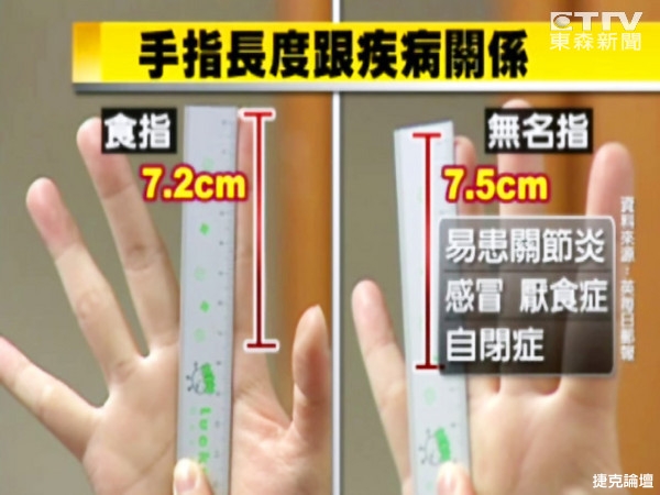 每個人的「手」都有不同的特質,而一項研究發現,人的手指甚至可以看出一個人的健康、生育能力、婚姻,甚至連患心臟疾病、乳腺癌等疾病的機率都可以知道,人的運動能力及個性也與食指和無名指的長短有關聯。
