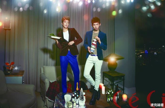 近日,韓國男生組合2AM成員趙權和2PM成員張佑榮一齊亮相時尚雜誌《CeCi》聖誕節寫真,一展兄弟深厚情誼。