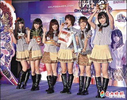 SNH48俞慧文(左起)、邱欣怡、鈴木瑪莉亞、宮澤佐江、湯敏、許佳琪代言電玩超可愛。(記者陳奕全攝)