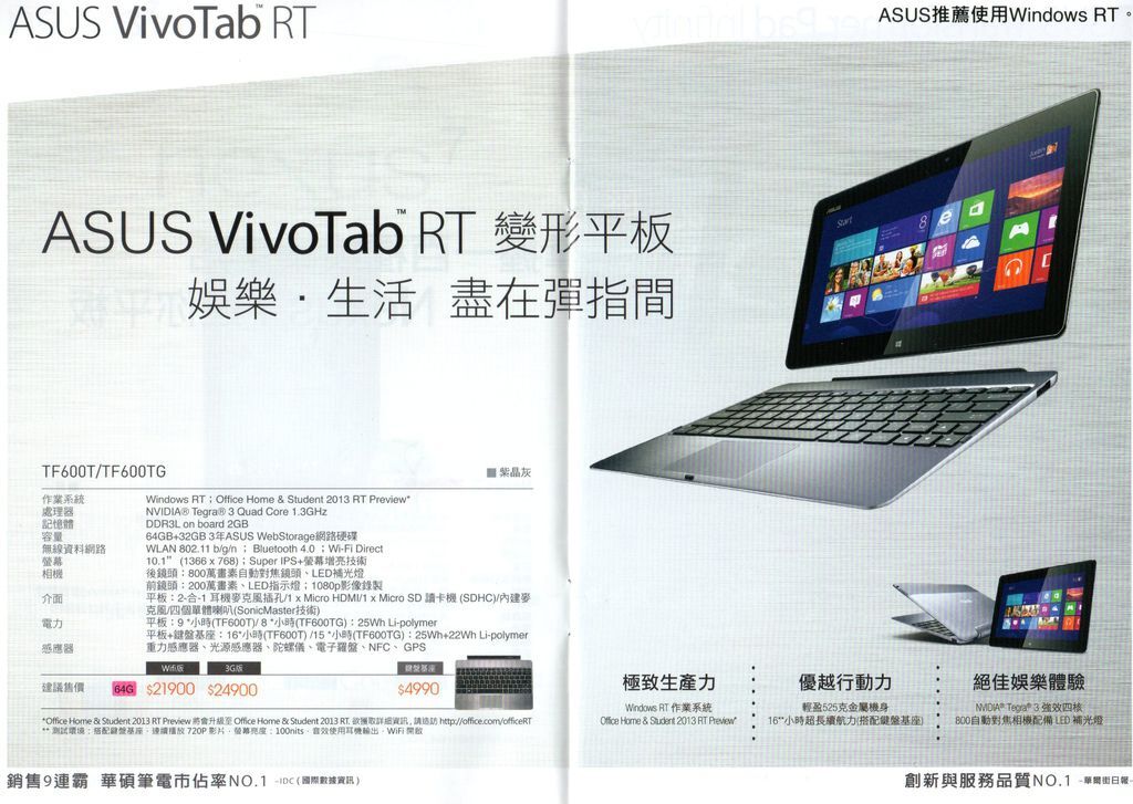 【主角二號:Win8 RT的猛將~ASUS VivoTab RT變形平板TF600系列】