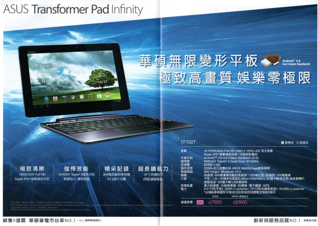 【主角一號:歷史最悠久~演進最多的ASUS Transformer Pad infinity無線變形平板TF700系列】