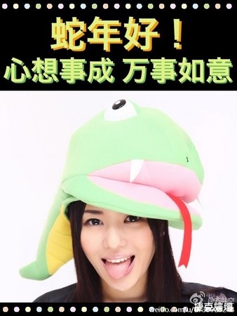 蒼井空9日在微博上傳自拍照,頭頂上戴著長舌的蛇頭娃娃,她也跟著擺出吐舌的俏皮表情說:「蛇年好!祝你新的一年裡事業順利,心想事成!」不少粉絲都跟著她在網路上開心拜年,也有人只注意到其舌頭。