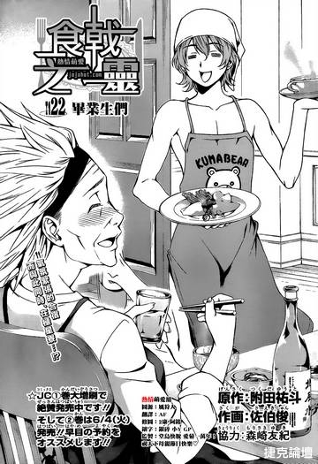 由《少年疾驅》的作者附田老師跟裡漫畫界的名畫師佐伯俊(也就是tosh老師)合作的jump next主打短篇!在料理界的王者學園——遠山茶寮料理學園中,料理天才少女繪裡奈和奇怪的少年幸平創真之間的激烈碰撞,將會給料理界帶來什麼呢?讓人熱血沸騰的美食漫畫要開始了!