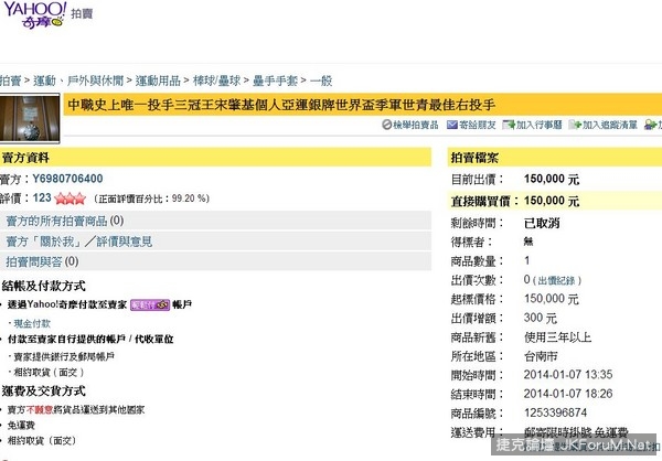 ▲中職第1位投手3冠王宋肇基,籌母醫藥費網拍獎牌。(圖/翻拍自奇摩拍賣網頁,下同)