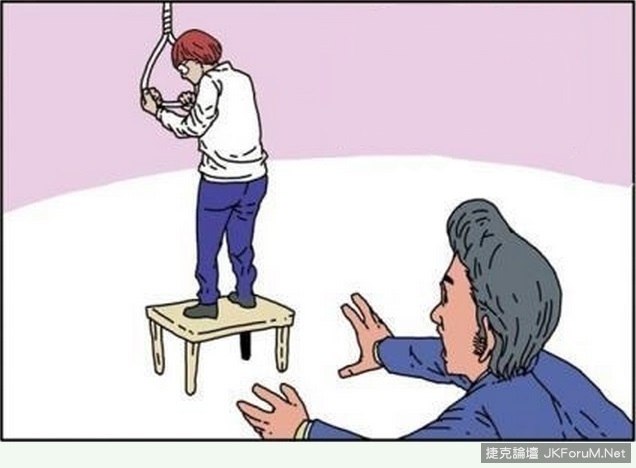 同學:「小明,別做傻事!」