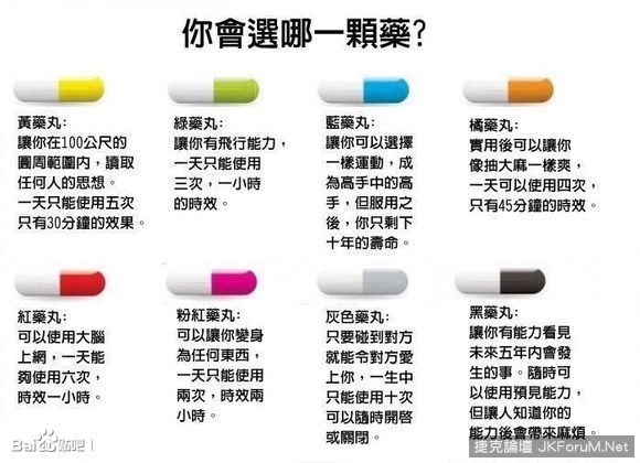 灰色藥丸 然後去選美大會上娶十個老婆XD. 我來亂的