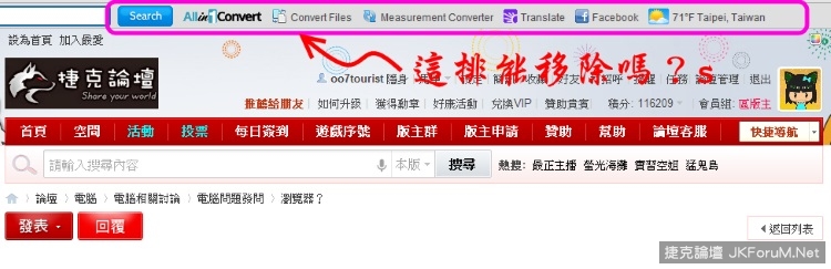 可是卻是跟先前的網頁視窗不甚相同,很想知道能不能將那些連結工具移除,