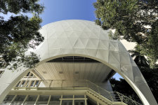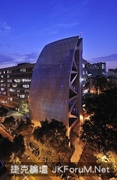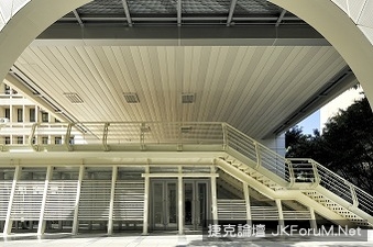 2.     太陽能光電實驗:雙層立面之雙曲弧面造型之沖孔鋁板外牆,可供學校未來設置BIPV太陽能光電板實驗(三機一體:發電、透視、遮陽)。