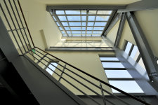 1.     氣流與通風實驗:利用北、東、南立面三段式節能窗,可供自然通風、機械通風實驗;並利用各層窗戶及樓梯間之屋頂採光天窗設置可供未來氣流與通風實驗:包含單邊通風換氣、風力通風、浮力通風等。