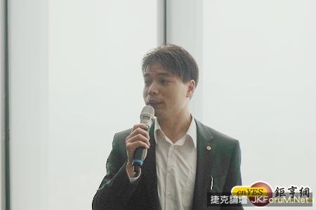 互動資通總經理郭丞翔表示,6月中將推出「企業臉書」及「企業LINE」封閉式社群產品。(鉅亨網記者張旭宏攝)