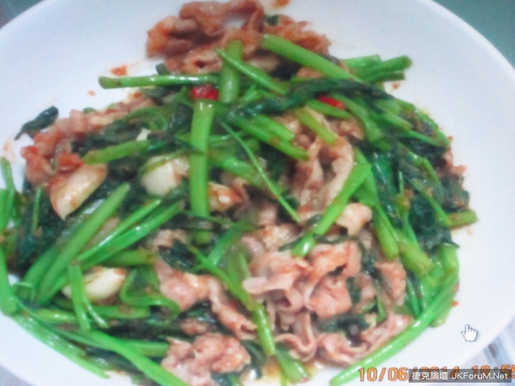 7.放入空心菜,加入兩湯匙沙茶醬炒絆