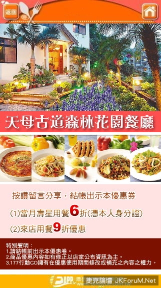 台北 #天母古道森林花園餐廳 憑APP 壽星6折 打卡9折