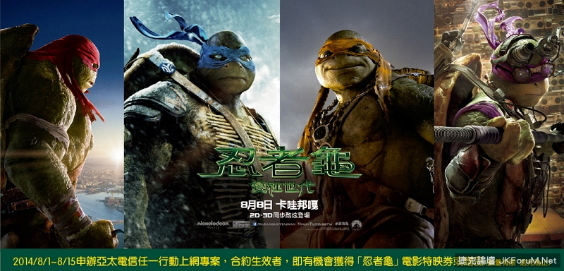 2014/8/1-8/15 申辦亞太電信任一行動上網專案,合約生效者,即有機會獲得「忍者龜」電影特映券或贈品(數量有限 送完為止)