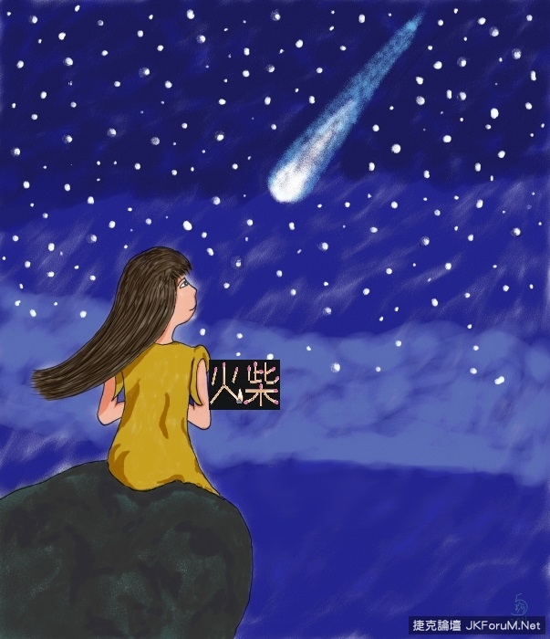 但流星掉下來打中了賣火柴的女孩,她就掛點上天堂了!! |