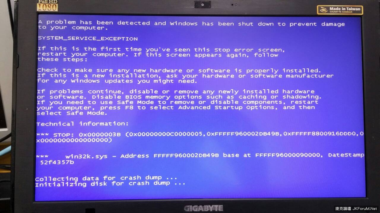 既然你可以在這邊PO文,想必你肯定可以上網,試著尋找關鍵字"win32k.sys"、"0X000003B",或者你可以選擇不理會,直接重開機,但是重複發生同樣問題率很高。