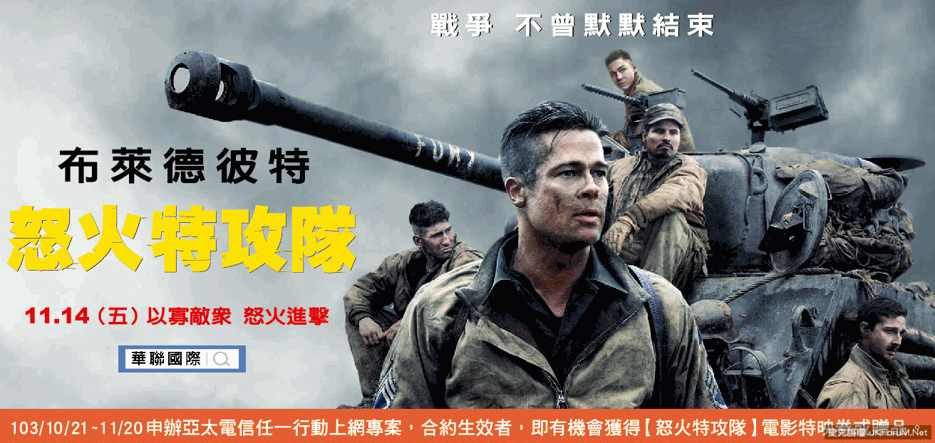 103/10/21∼11/20 申辦亞太電信任一行動上網專案,合約生效者,即有機會獲得「怒火特攻隊」電影特映券或贈品