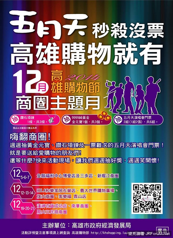 高雄購物節12月加碼送,週週抽出五月天演唱會門票、黃金金元寶及鑽石項鍊等大獎!