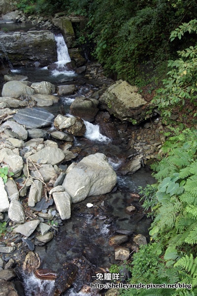 終於過好漢坡,穿過步道見林中瀑布淙淙聲響,原來是山林間的清澈流水,此處屬山谷峽間,站在此處涼風加上水氣陣陣輕撫全身,在此處歇息正是最佳休息點…