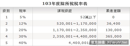 計稅額度=總年度收入-免稅額-標準扣除額-薪資所得扣除額-儲蓄投資扣除額