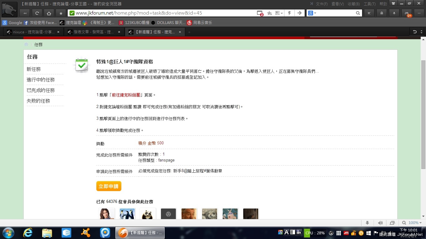 小弟我要接一個特殊1@巨人1#守備隊資格 的臉書按讚任務!