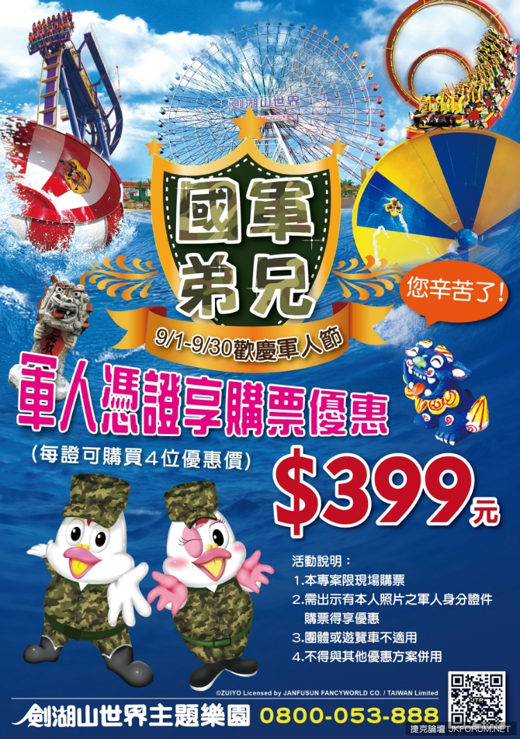 2.需出示有本人照片之軍人身分證件購票得享優惠
