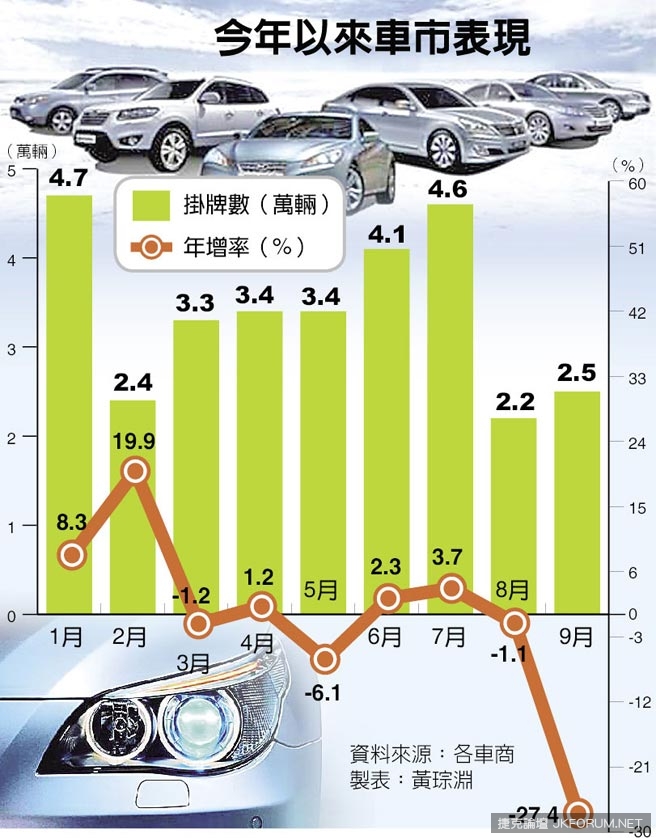股災餘波盪漾,加上財政部拋出研擬給予中古車報廢、出口換購新車補貼等議題,9月新車銷量年減超過5成,前3季新車總銷量年增率更由正轉負,恐出現全年衰退的「死亡交叉」,看在車廠眼中心驚膽跳。